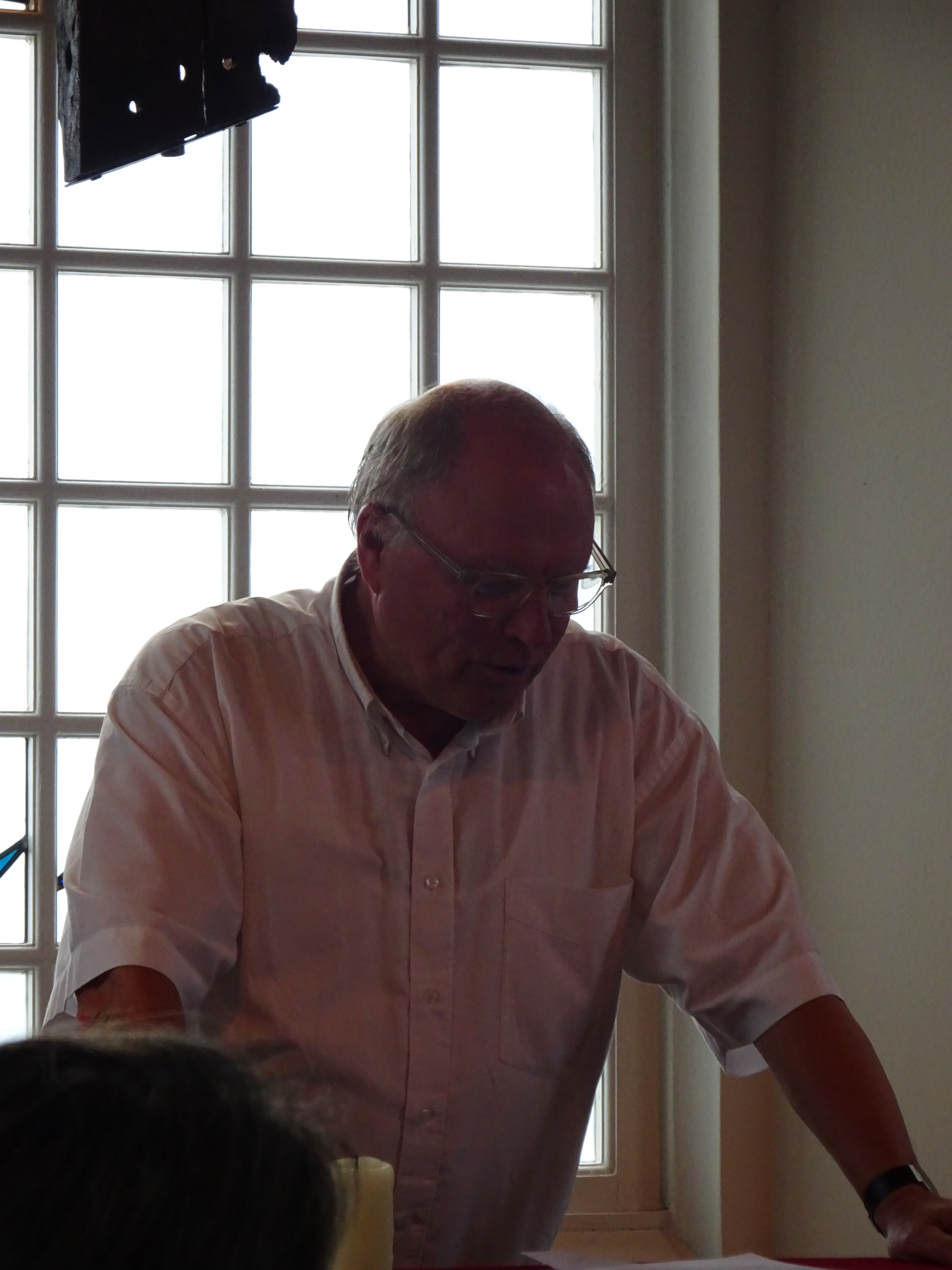 Er zijn broodjes en koffie. En dan volgt de enthousiaste vertelling, door dhr. Jacques van Geest. Hij liep in 2014, vanaf Roncesvalles (Pyreneeën) naar Santiago. Het was zijn tweede tocht naar Santiago. En dat hij er veel plezier aan beleefd had, was duidelijk te horen. We krijgen steeds meer zin om zelf te gaan starten!