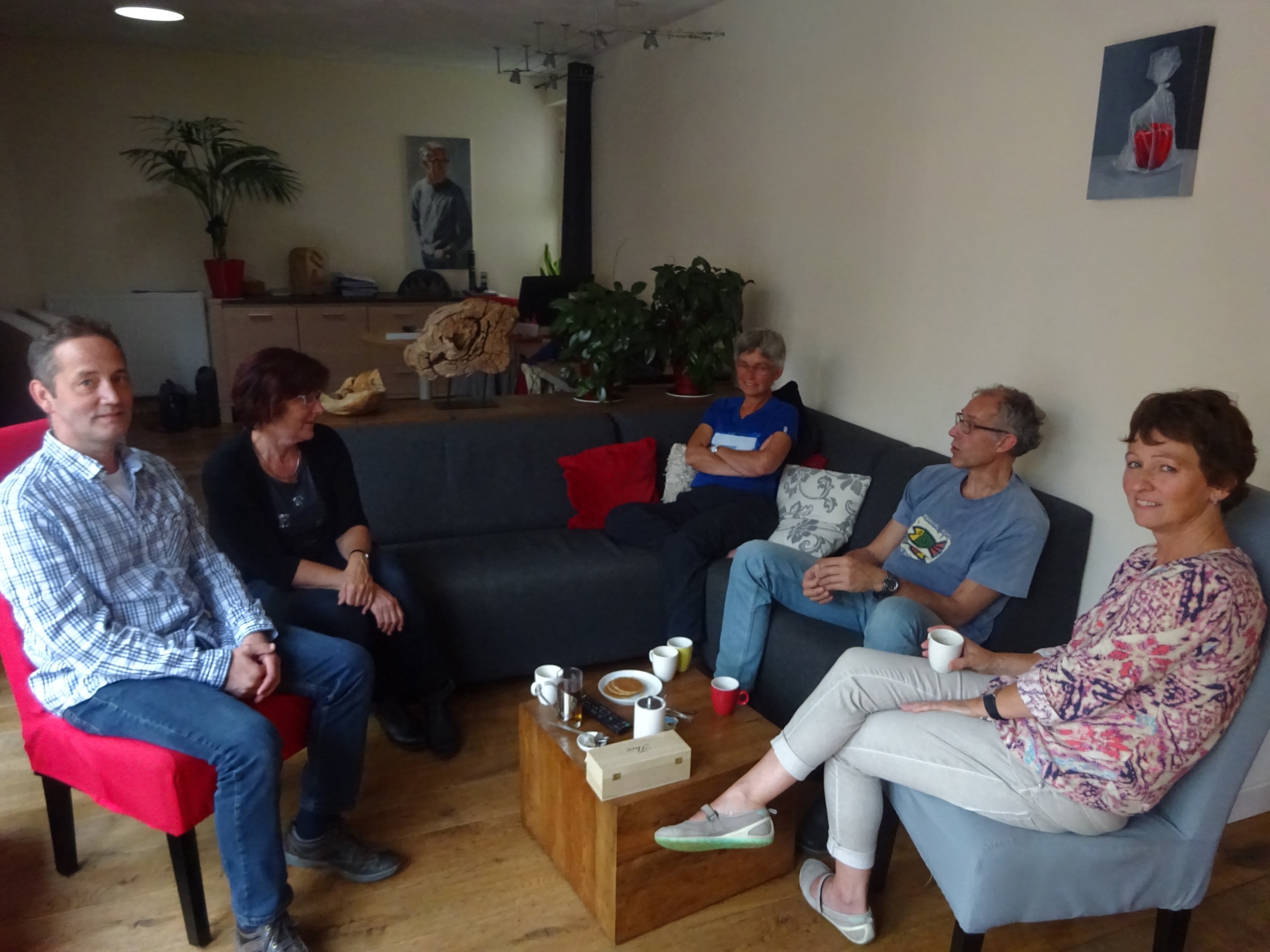 En ze hadden heerlijk gekookt!  Het wordt een lange en gezellige avond. Ik had gedacht om, nu we toch in Venray zijn, ook nog even langs Yvonne te gaan. Maar dat zit er niet meer in. Maar Yvonne en Ton komen even hier koffie drinken. Ook leuk!