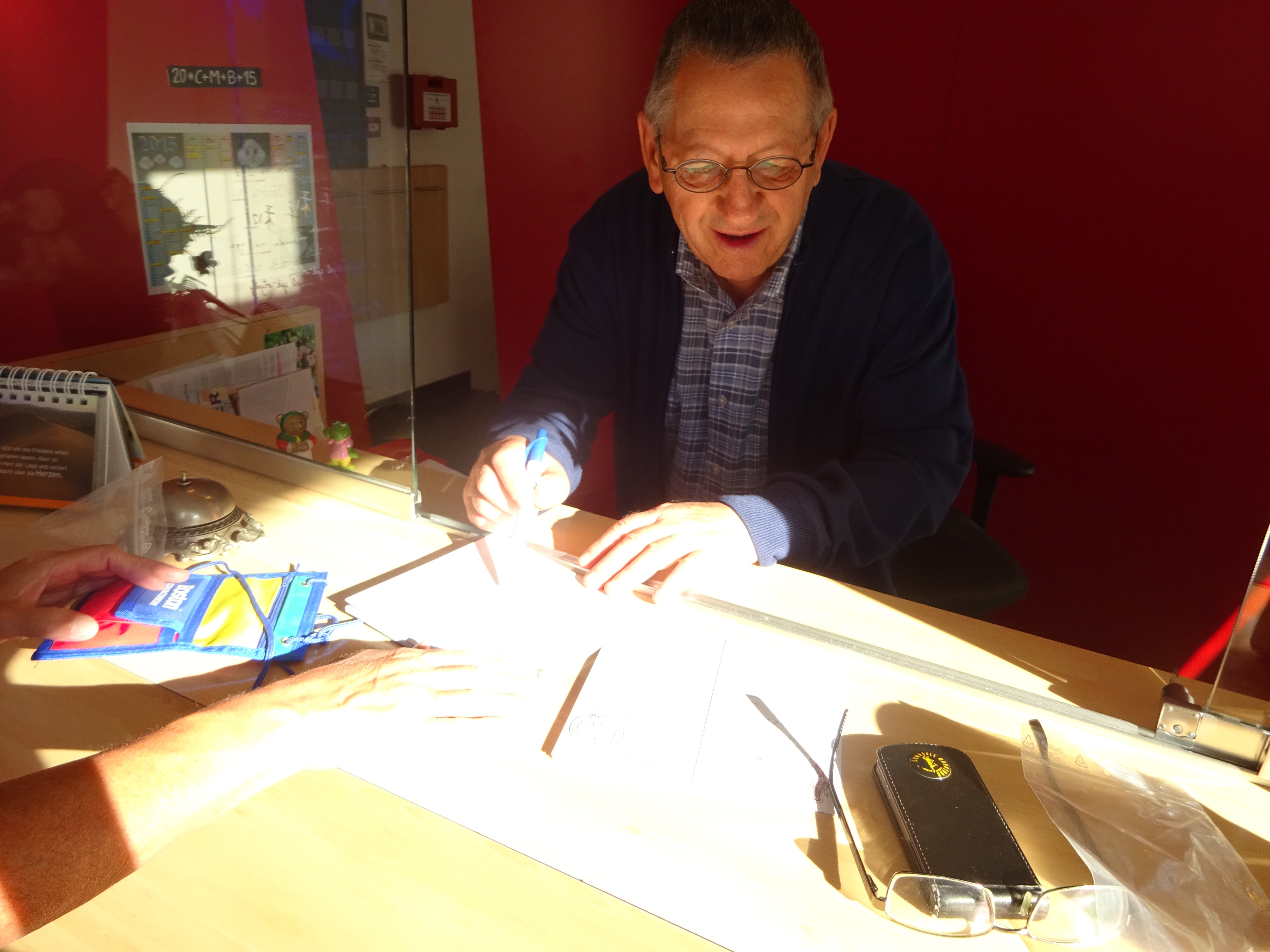 Bij het vertrek uit het Missiehuis ontvangen we onze eerste stempel, sinds we echt op weg zijn.