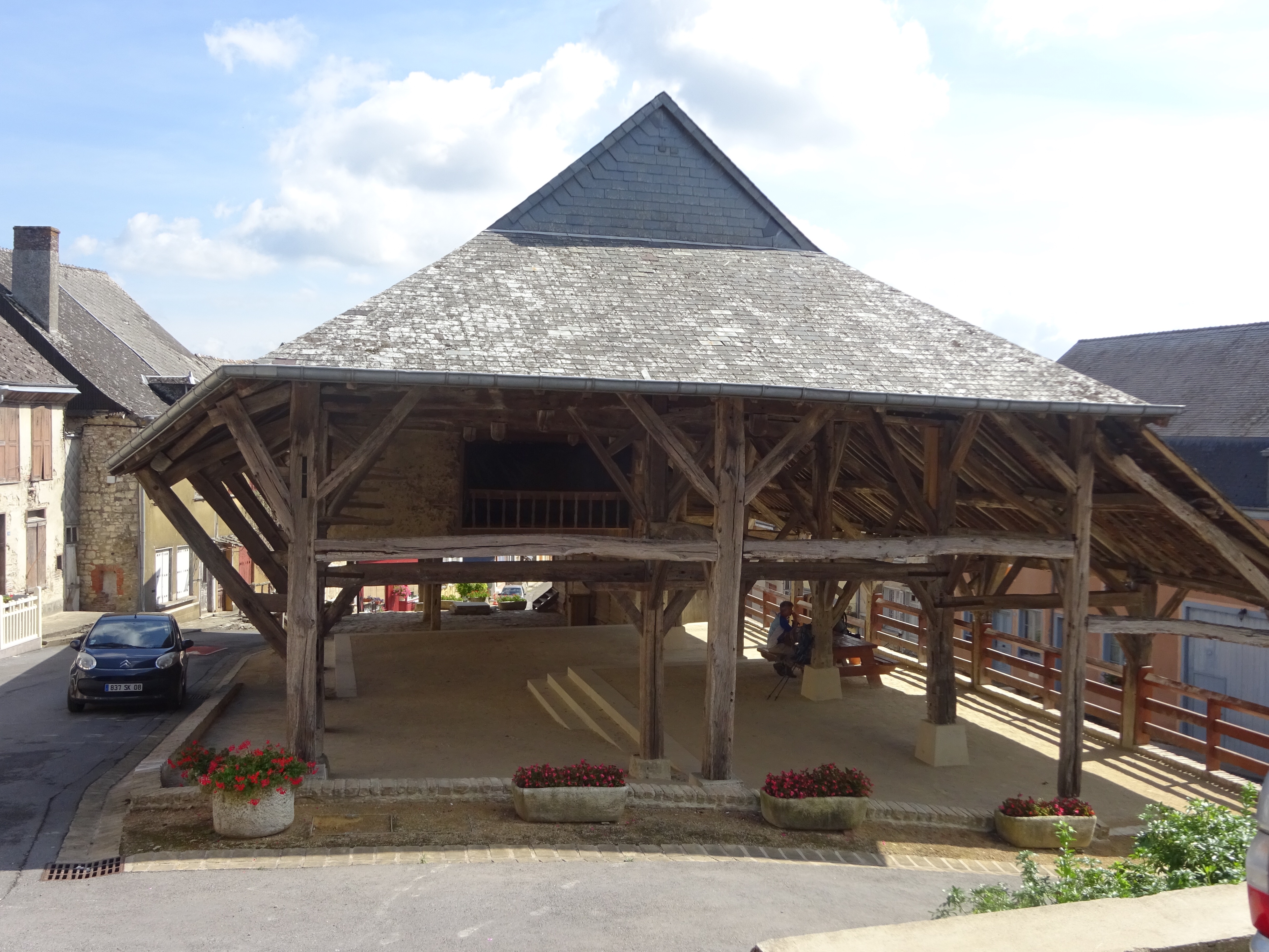 Dan verder naar Wasigny. Daar is een mooie oude overdekte markthal. Goede plek om een boterhammetje te eten.