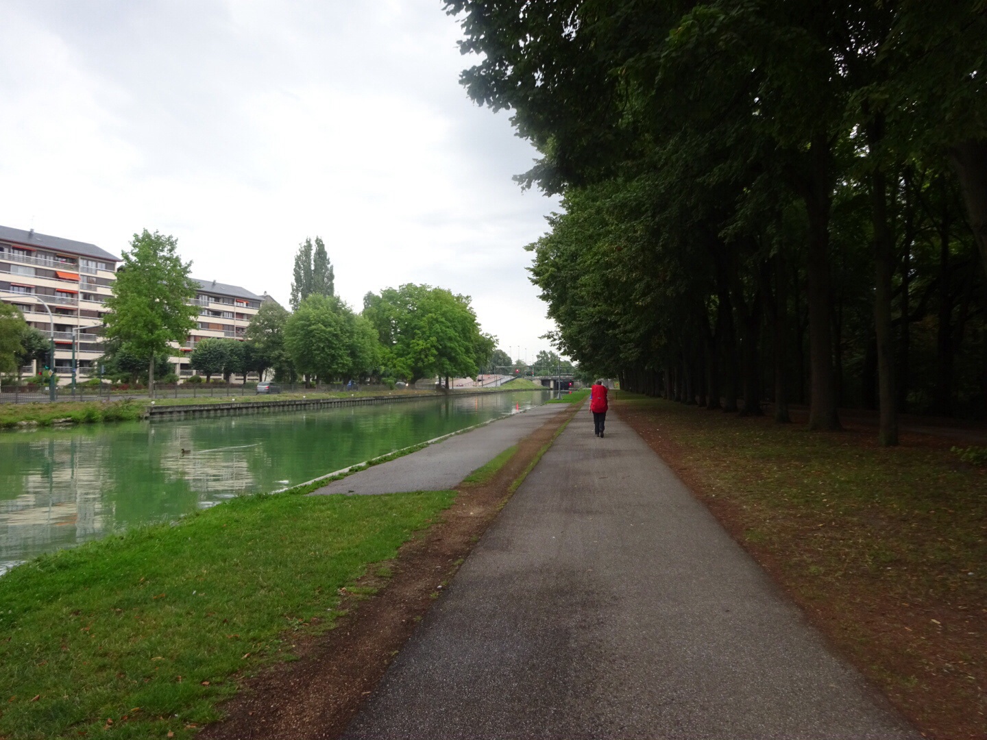 We verlaten Reims via een pad dat langs het kanaal loopt. Dit is de plek waar mensen uit Reims komen om te wandelen, fietsen of hardlopen. Het is er druk.