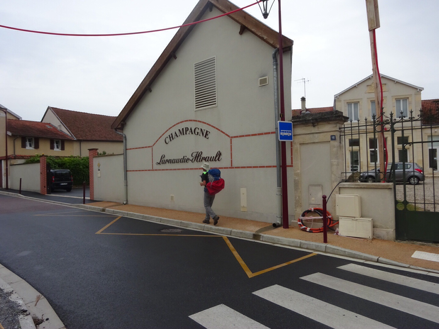 Na wat kilometers verkeerswegen, lopen we dan opeens tussen de wijngaarden. De druiven beginnen te verkleuren, maar zijn nog niet helemaal rijp. Misschien gaan we dus, in een van de volgende wijngebieden aan de route, de druivenoogst meemaken. De kleine dorpjes, waar we doorheen lopen, hebben allemaal verschillende kleine champagnehuizen.
