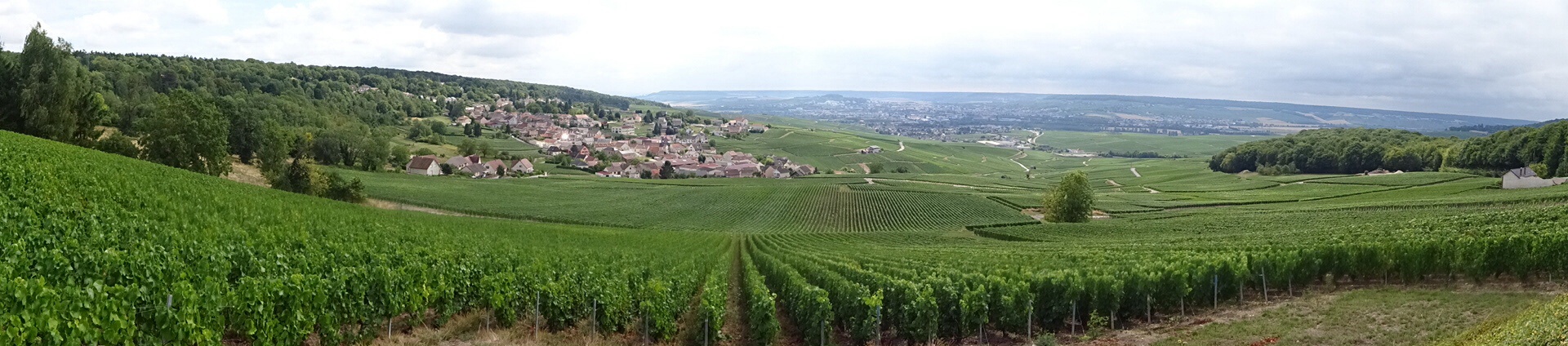 Na deze eerste champagne dorpen gaan we de bossen in. Mooie wandelpaden met hier en daar flinke hellingen. Als we de bossen weer uitkomen zijn we wat op hoogte, en worden we getrakteerd op fantastische uitzichten over Epernay, het centrum van het champagnegebied.
