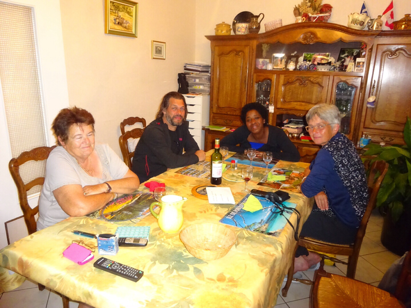 Savieres, waar we overnachten, ligt anderhalve kilometer van het pad. Als we echter in het centrum de weg van de gîte vinden, moeten we nog 1108m lopen. De huisnummer van de gîte is namelijk 1108. En de huisnummers tellen niet zoals gebruikelijk, maar zijn de afstand vanaf het begin van de weg.
