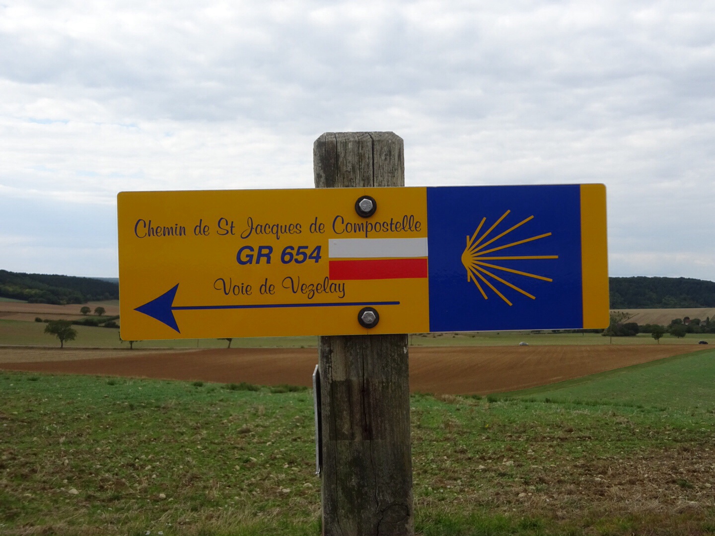 Nadat we het stadje uit zijn, volgt een wandeling van enige uren over mooie bospaadjes. Het is goed gemarkeerd en loopt makkelijk. We wandelen in een rustig tempo, proberen regelmatig te rusten. Na 10 km eten we een croissantje in La Maison-Dieu. 9 km later een broodje bij het kapelletje van Saligny. En dan weer 10 km verder op het muurtje van de kerk van Cuncy-lès-Varzy. We beginnen te geloven dat we het kunnen halen.