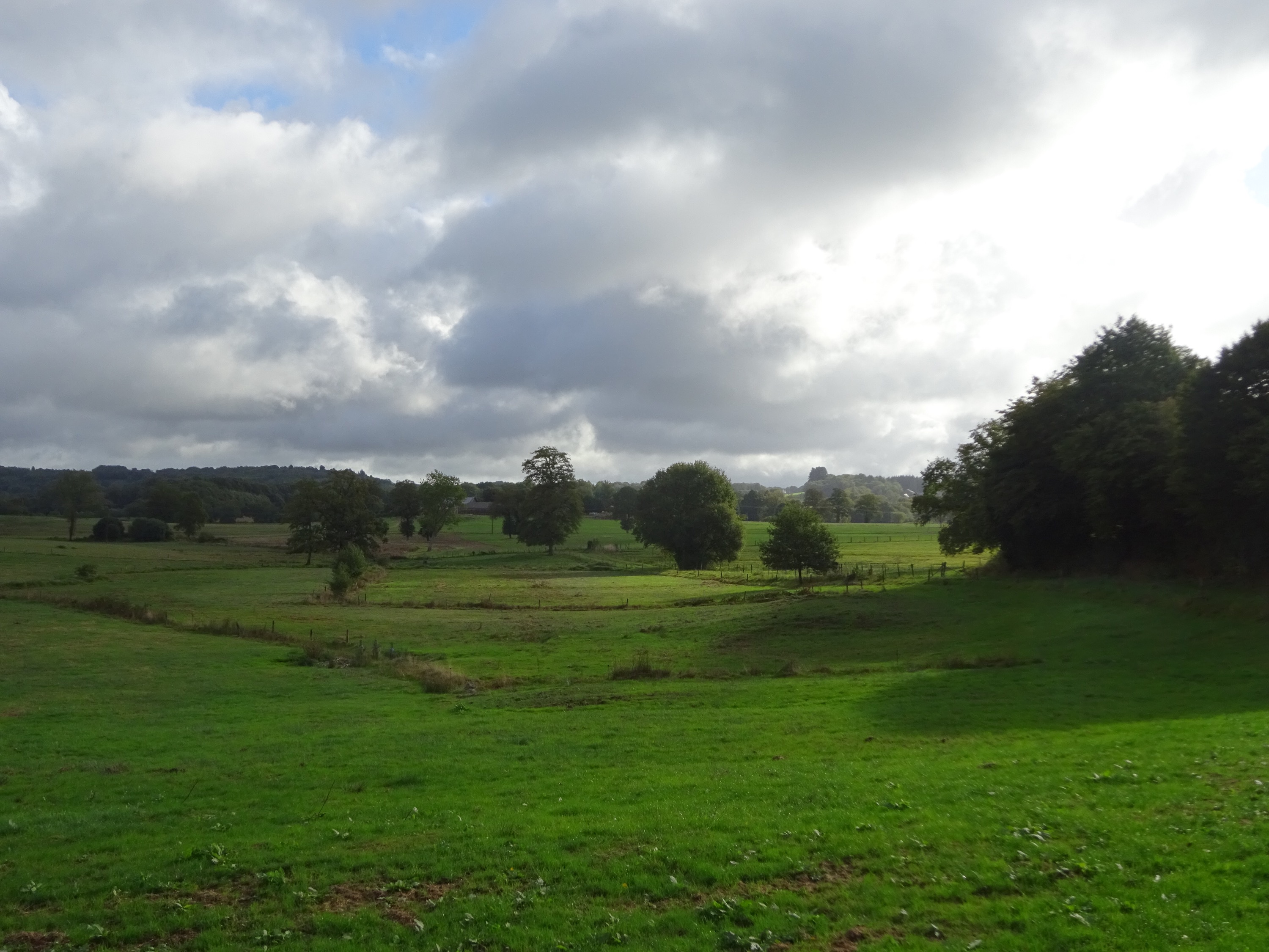 We vertrekken met regen. Even later is het weer droog. Het gaat de hele dag op en neer; donkere dreigende luchten afgewisseld met felle zonneschijn. Gelukkig zijn de buien telkens maar kort, en drogen we door zon en wind tussendoor steeds weer op.