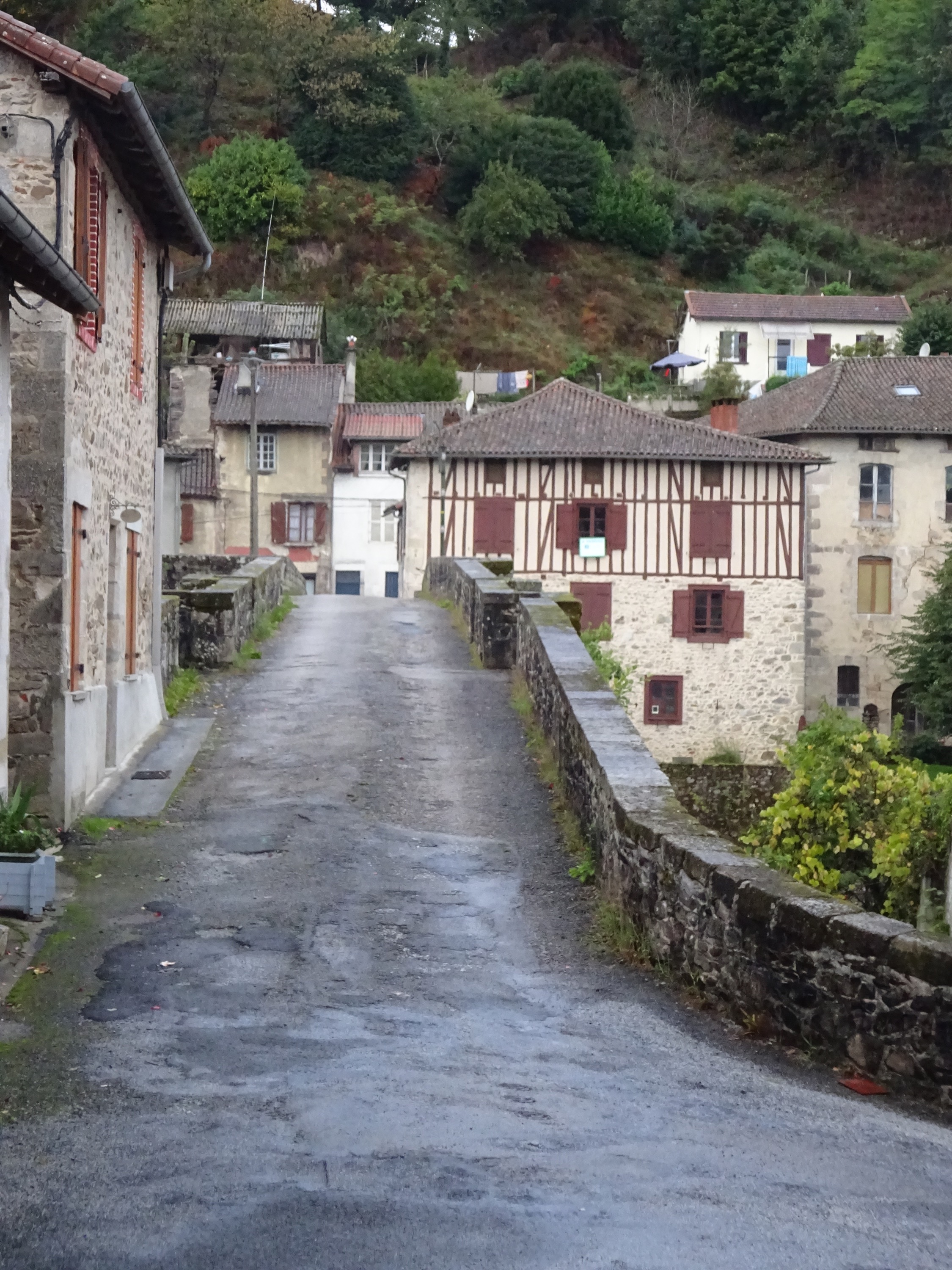 Weer een paar dorpen verder worden we aangesproken door een vrouw, die ons uitnodigt om bij haar te komen eten (omdat het zo regent). Maar eigenlijk willen we door naar Limoges, dus we slaan het vriendelijk af.