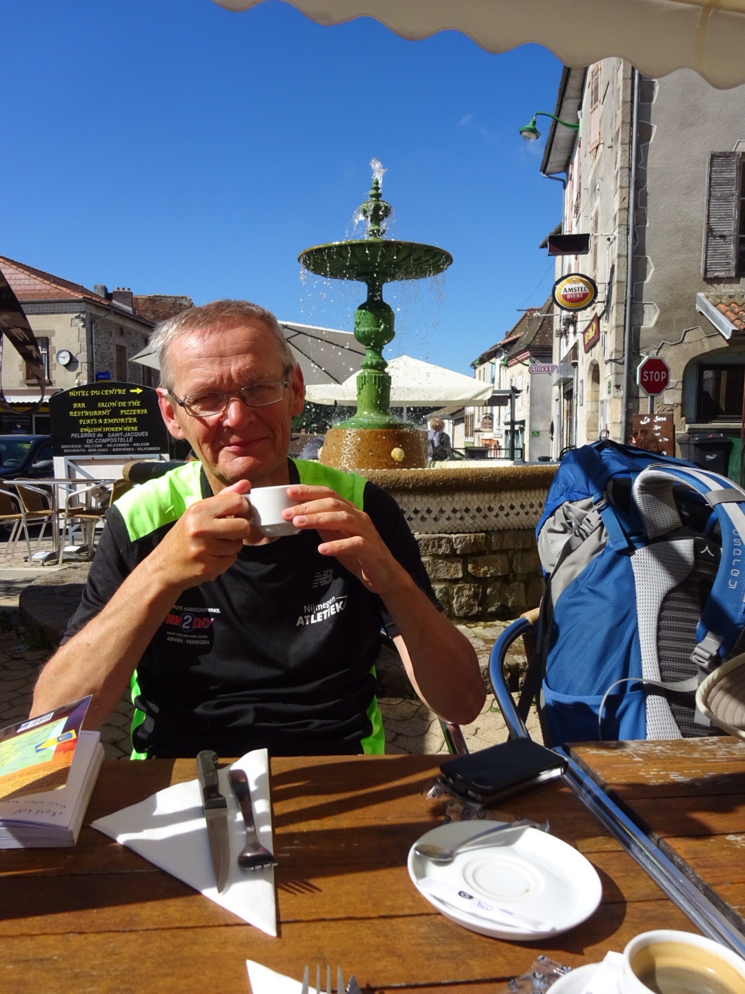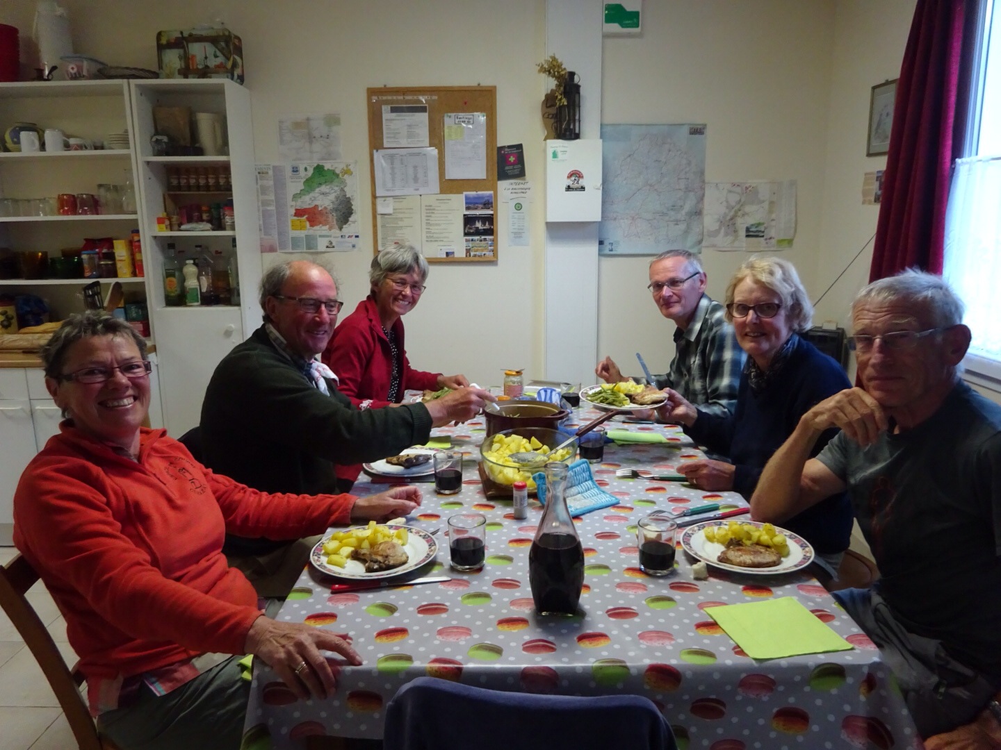 Deze gîte heeft een herbergier die de herberg beheert. Het is een Nederlandse vrouw: Hennie. Ze is ontzettend enthousiast. En ze biedt ook maaltijden aan (halfpension). Dus we eten vanavond met z’n allen. Het wordt een leuke avond.