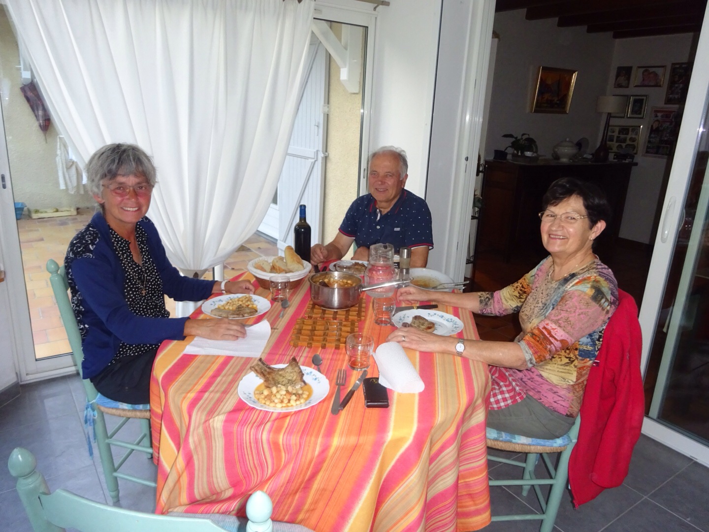 We praten over vanalles en nog wat: steigende pensioenleeftijd (actuele discussie in Frankrijk), onze tocht, Noorwegen (hun dochter en de kleinkinderen wonen in Trondheim). Leuke avond!