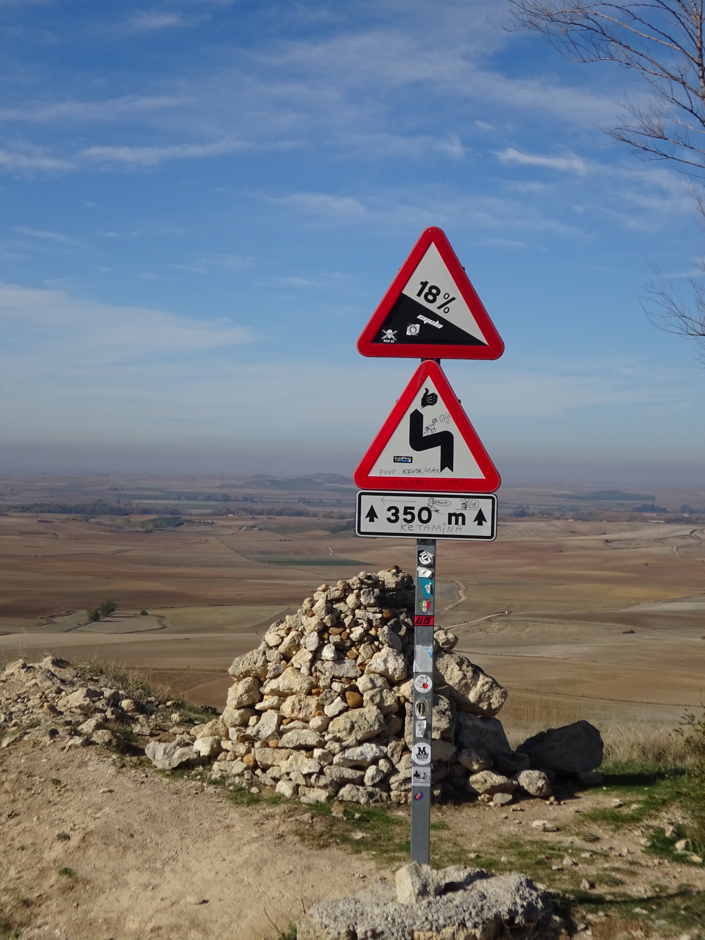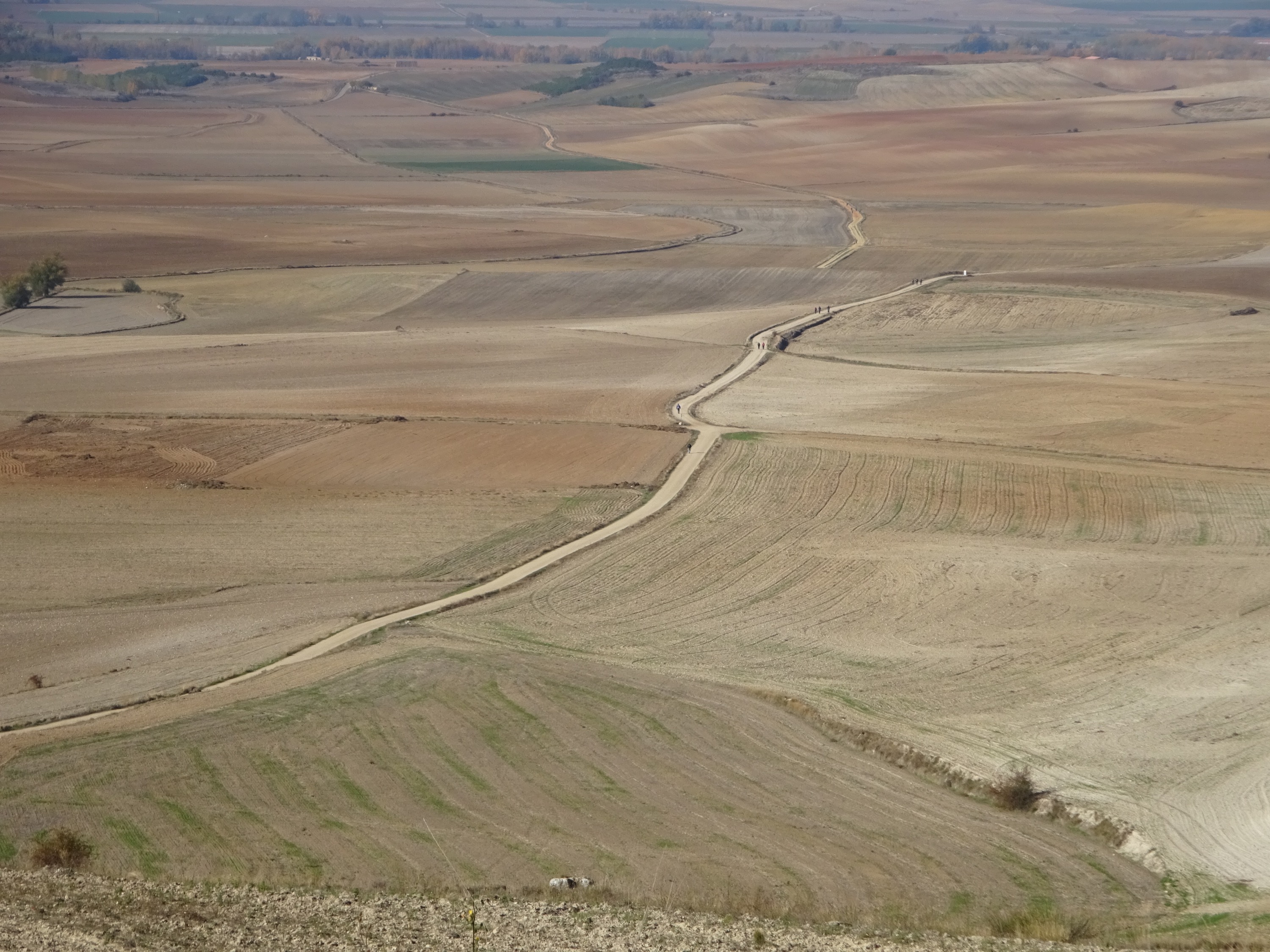 Dan volgt een lange helling omhoog, en dan nog een stukje omlaag en dan zijn we weer op de Meseta
