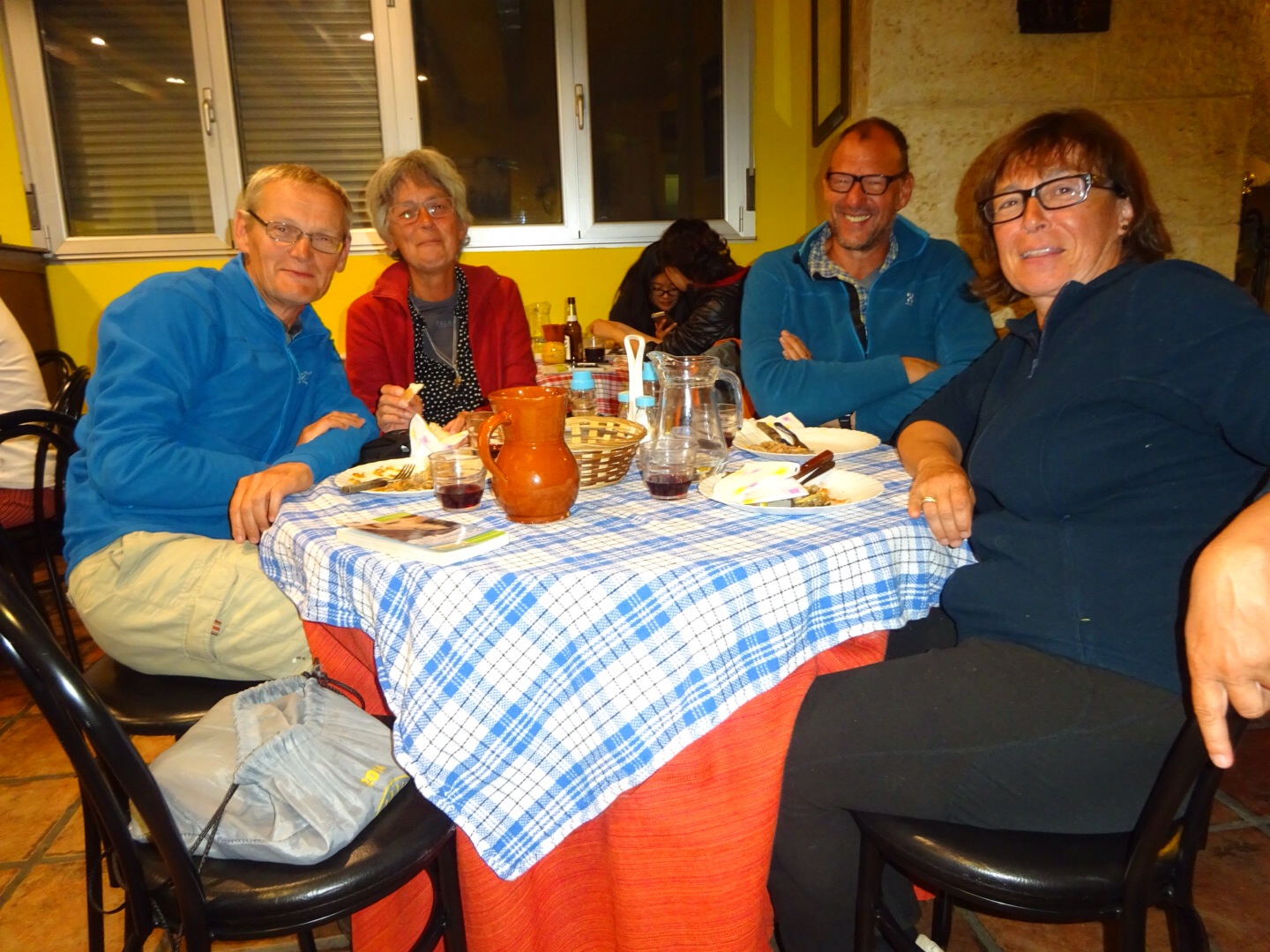 De afgelopen nacht is de wintertijd ingegaan. Dat betekent dat we op de klok, een uur eerder kunnen vertrekken, zonder in het donker te hoeven lopen. We komen, op de klok, dus ook een uur vroeger aan. En daarmee wordt de vrije tijd, na aankomst een uur langer. Het avondprogramma in een herberg blijft natuurlijk gewoon de klok volgen: vanaf 19:00 eten, 22:00 de deur op slot en 22:15 licht uit.