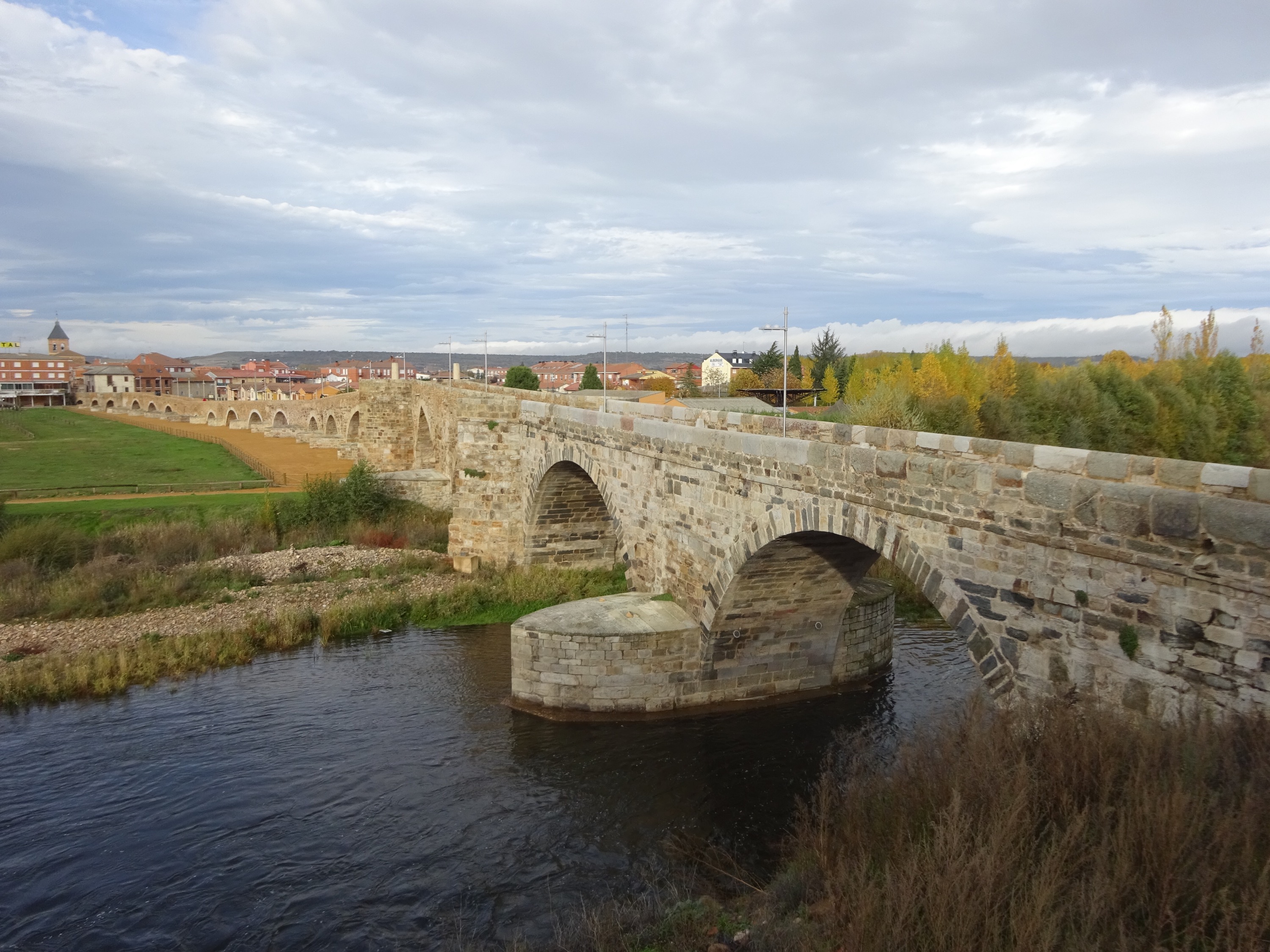 Al na zo’n anderhalf uur komen we in Hospital de Órbigo aan. Daar ligt de langste brug van de Camino.