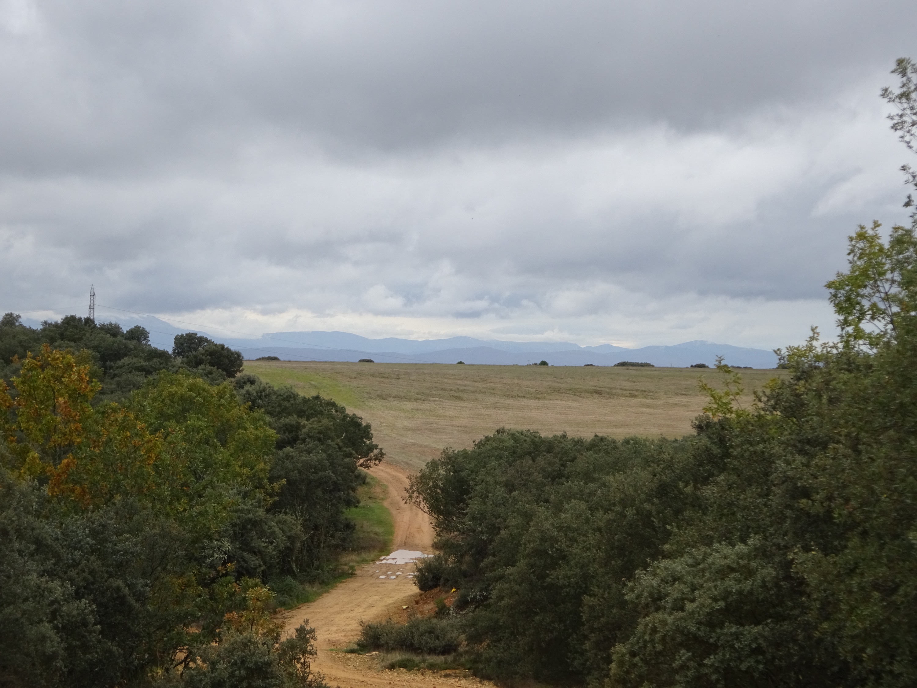 Als we het dorp uitlopen is er weer een keuze tussen twee alternatieve routes. Deze keer kiezen we wel de langere route, die de weg vermijdt. En daar krijgen we geen spijt van. We lopen door een mooie omgeving. Er liggen een aantal kleine dorpjes aan het pad. En zo langzamerhand wordt het weer een beetje heuvelachtig. Na zoveel dagen met lange rechte wegen, door een vlak landschap, kunnen we dit wel waarderen.