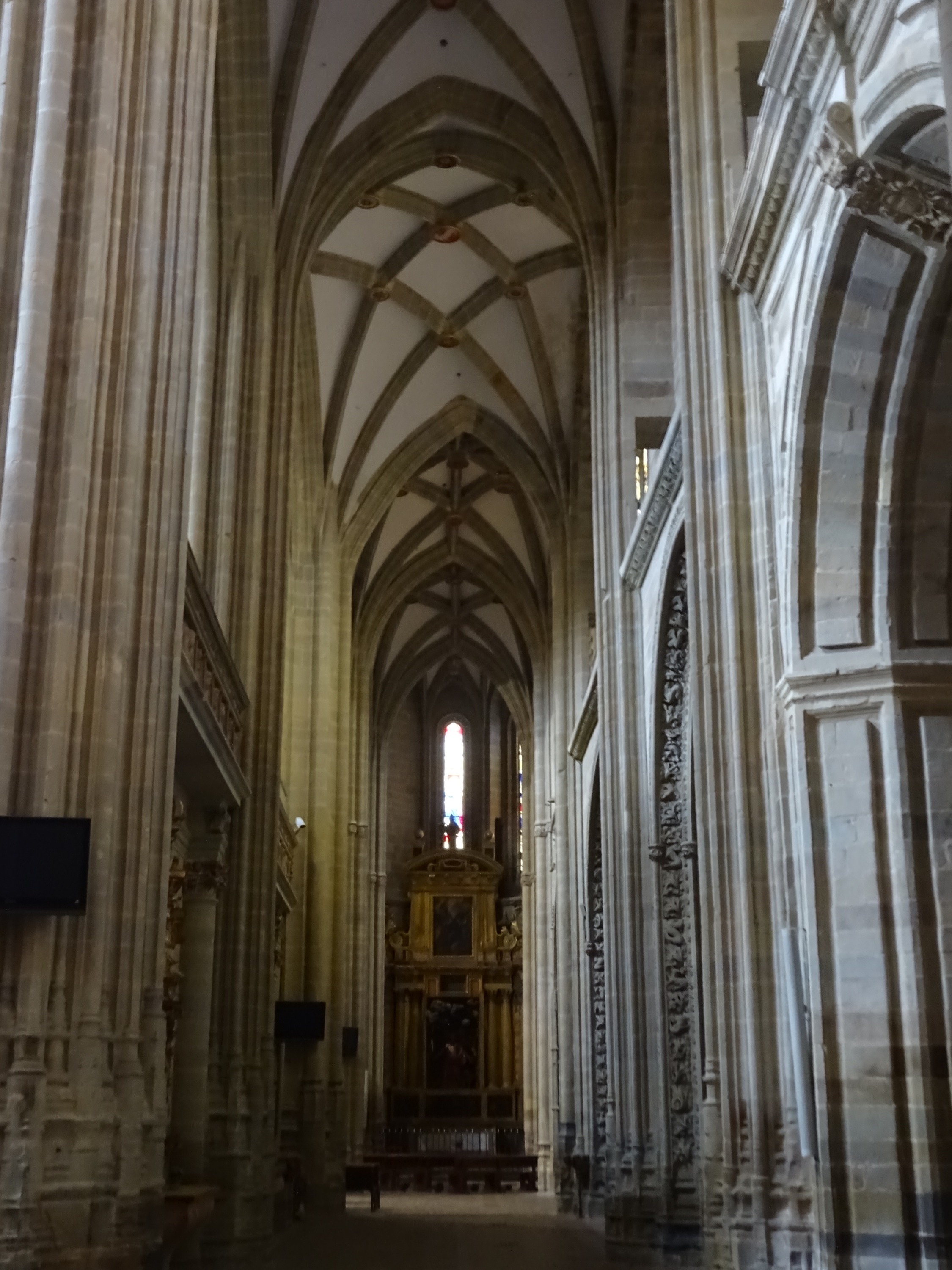 Ook Astorga heeft weer een grote kathedraal, die we bezoeken nadat we ons in een herberg daar vlakbij, hebben geïnstalleerd (Albergue San Javier). Van het rijtje kathedralen (Burgos- León – Astorga) vinden wij dit duidelijk de minste. Maar het is nog steeds een indrukwekkend en mooi gebouw.