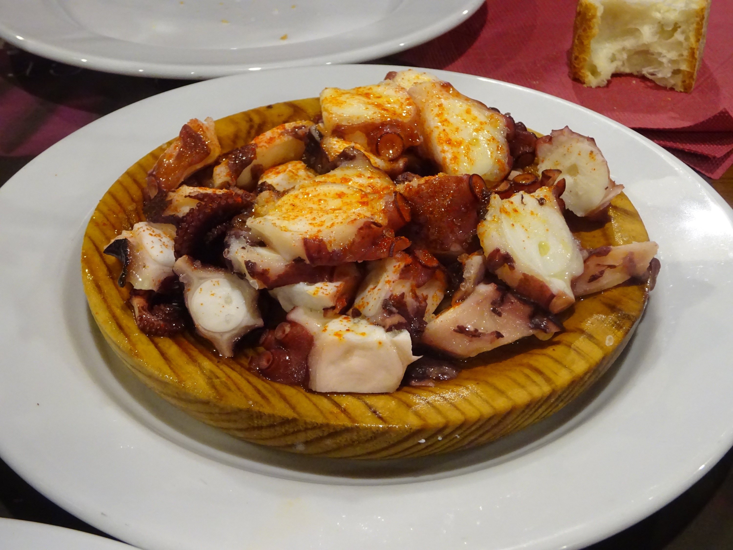 We eten vanavond eens geen pelgrimsmenu. We gaan naar een zogeheten pulpería. We eten er heerlijke inktvis.