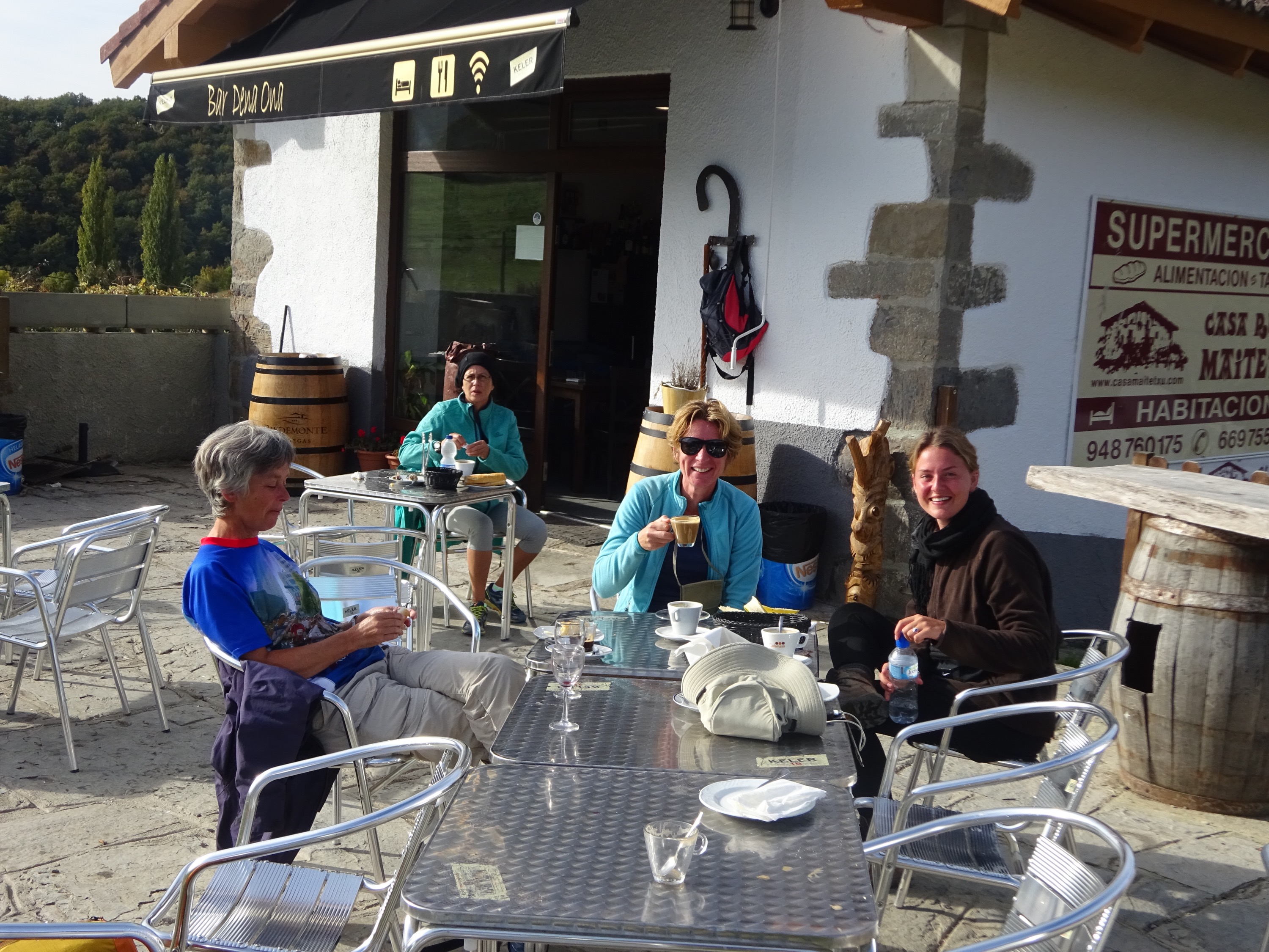 In Zubiri, op 22 km, moeten we beslissen of we daar overnachten, of nog een dorp verder gaan. We besluiten een broodje te eten, en verder te gaan.