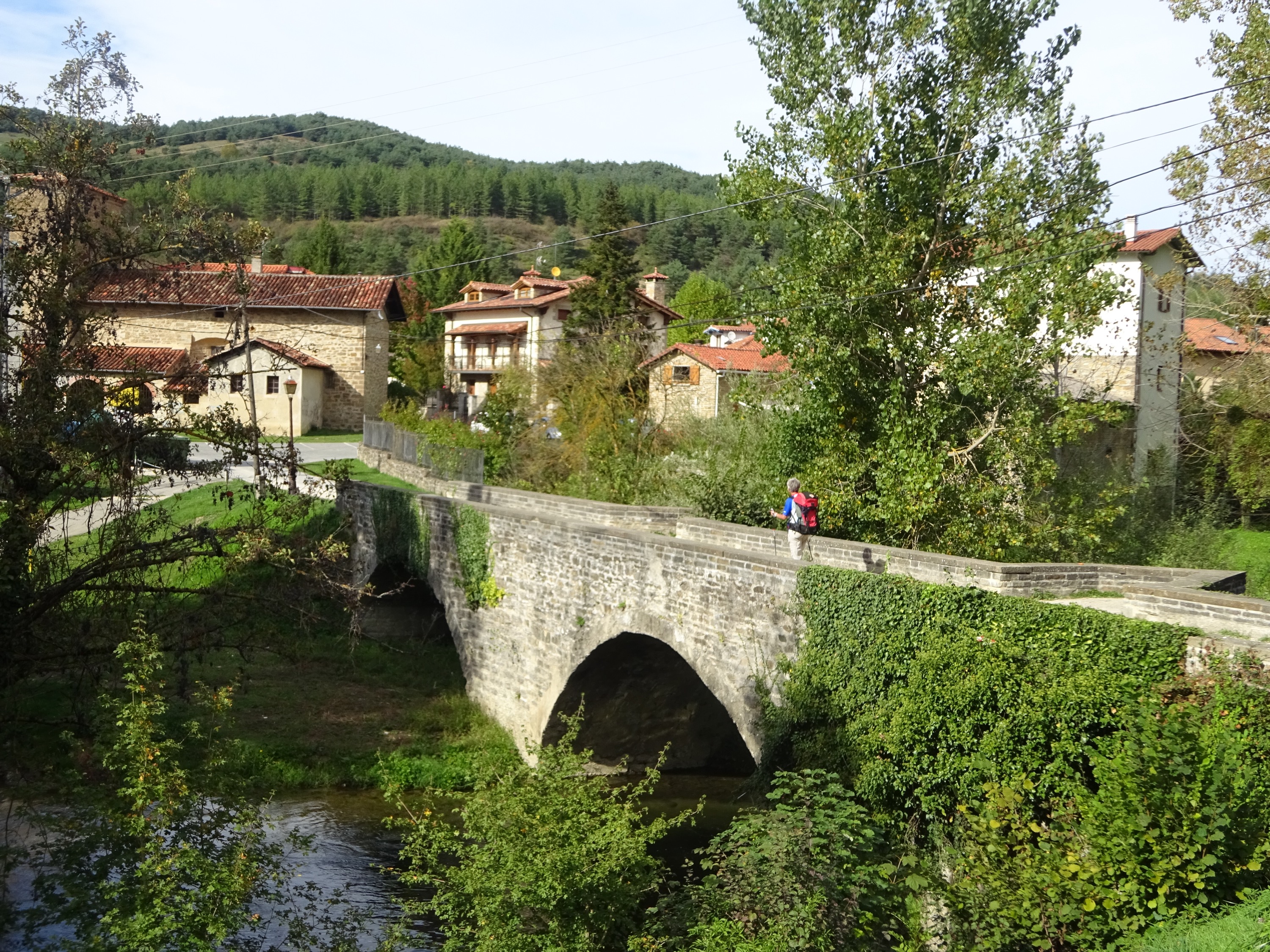 Het volgende dorp, Zubiri ligt verder weg. We lopen nog steeds door een bergachtig gebied. De paden zijn hier heel goed. We lopen veel door bos. Af en toe schitterende uitzichten.