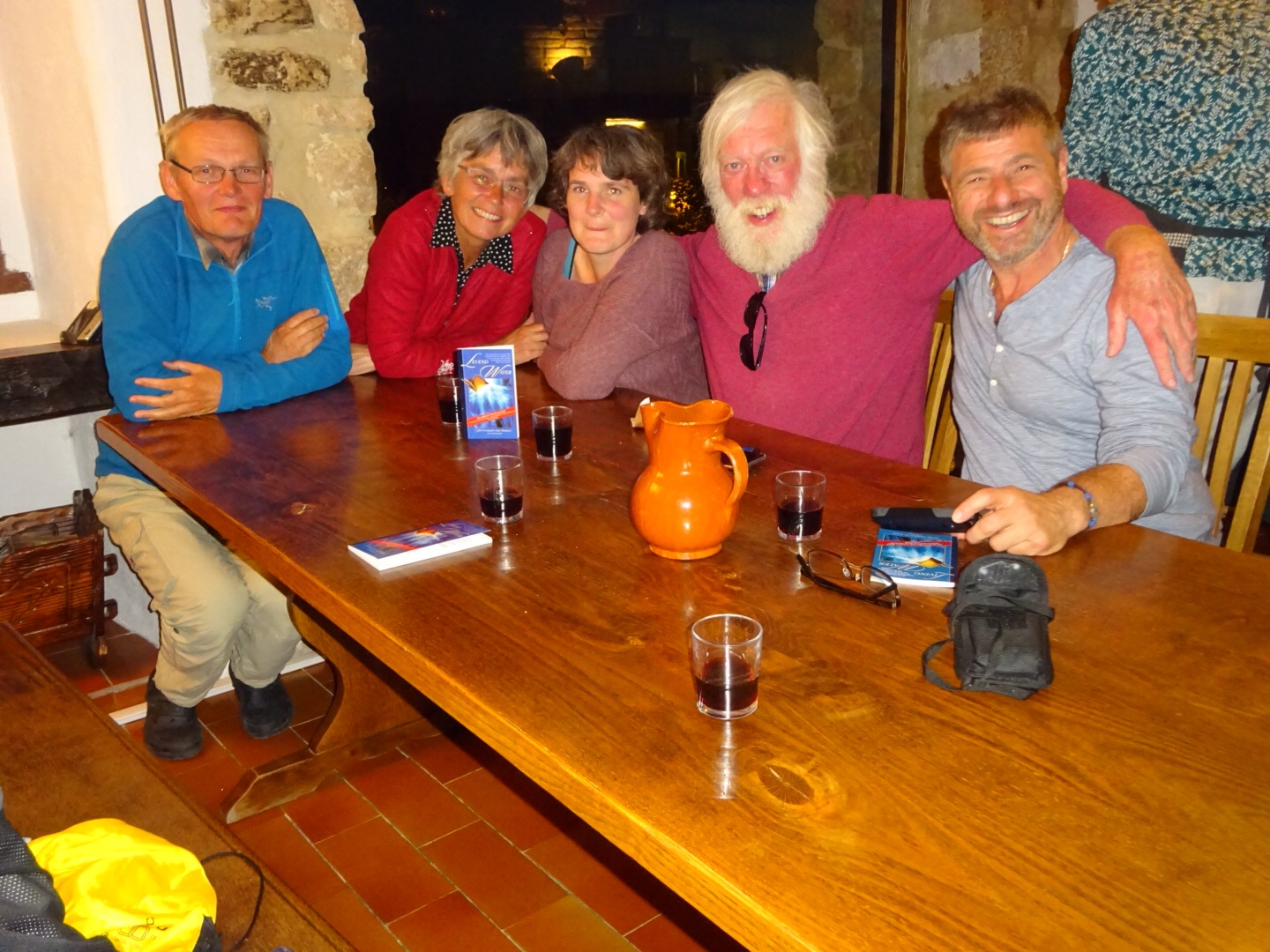 We krijgen er een bed toegewezen in de gemeentelijke gîte. Er is tuin achter de gîte. Daar zitten Nynke en Sophie aan een biertje. We sluiten ons er graag bij aan. De automaat met blikjes bier is vlakbij, en opeens is het dan al zeven uur, en hebben we nog steeds niet gedoucht. Eerst maar eten. Wij gaan naar het restaurant van het dorp, voor het pelgrimsmenu. Daarna douchen en naar bed.